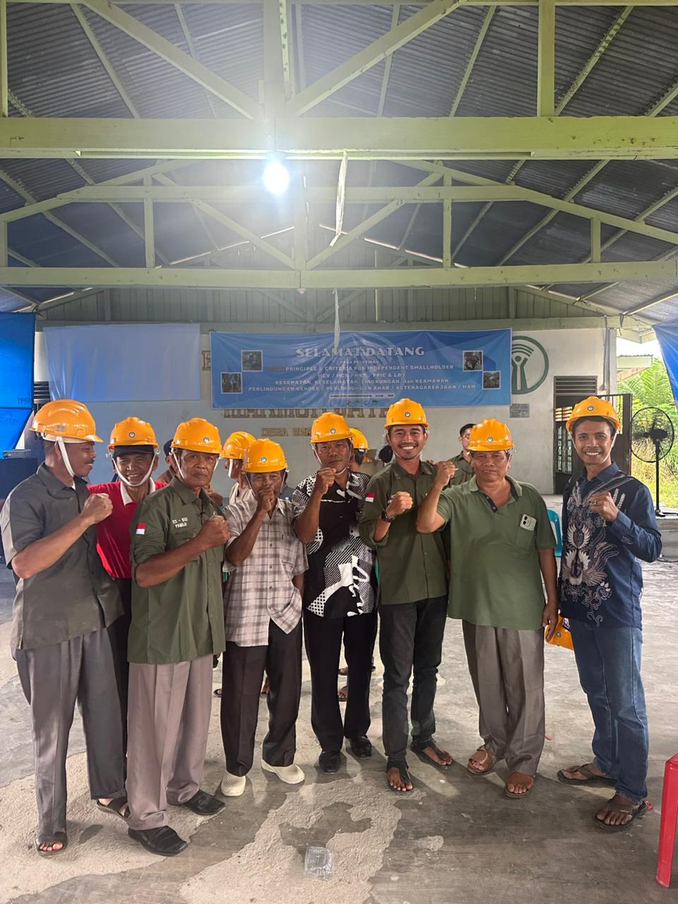 Beringin Jaya, Labuhanbatu Selatan – Koperasi Produsen Unit Desa Makmur Jaya (KPUD MAYA) bersama Tim PT. Inovasi Sejahtera Berkelanjutan (ISB) melaksanakan pelatihan persiapan Sertifikasi Roundtable on Sustainable Palm Oil (RSPO) di Gedung Aula KPUD MAYA, Desa Beringin Jaya, Kecamatan Torgamba, Kabupaten Labuhanbatu Selatan, Sumatera Utara. Pelatihan yang bertema Principle and Criteria (P&C) for Independent Smallholder, serta mencakup Keselamatan dan Kesehatan Kerja (K3) serta Nilai Konservasi Tinggi (NKT), berlangsung selama dua hari mulai Kamis, 23 Oktober 2025.